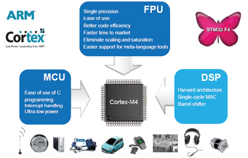 STM32 제품군은 32비트 ARM 코어텍스-M 프로세서 기반 MCU중 업계에서 가장 성공적인 제품으로, 전 세계에 출하된 ARM 코어텍스-M 기반 MCU 2개당 1개가 STM32 제품이다. ST마이크로일렉트로닉스는 기존 STM32 포트폴리오를 통해 계량, 의료 서비스, POS(point of sales), 빌딩 보안 및 자동화, 홈 오디오 등을 포함한 다양한 애플리케이션을 지원하는 것은 물론 STM32 F4 시리즈를 통해 자사의 타깃 애플리케이션을 한층 더 확대했다.