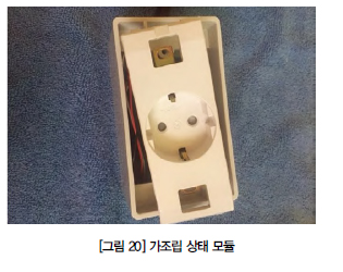 이제 노출박스에 콘센트를 나사못으로 고정한 후 콘센트 커버를 덮으면 깔끔하게 전원제어 모듈의 하우징이 끝난다(그림 22).