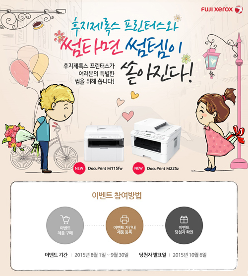 기업 및 개인용 프린터 전문업체 후지제록스 프린터스(대표 유성렬, www.xeroxprinters.co.kr)는 오는 9월 30일까지 ‘썸남 썸녀’를 위한 ‘썸템’ 증정 이벤트를 실시한다.