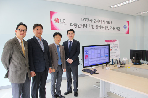 LG전자(066570, www.lge.co.kr)가 26일 세계최초로 다중안테나(MIMO, Multiple Input Multiple Output) 기술 기반 ‘FDR(전 이중 통신)’통신기술을 연세대학교와 공동 개발해 시연함으로써 5G의 핵심 기술을 선점했다.