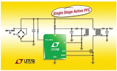 리니어 테크놀로지는 싱글 스테이지 액티브 PFC(역률 보정) 회로를 탑재한 절연 플라이백 컨트롤러(LT3798)를 출시했다. 이 제품은 입력 전류를 액티브하게 조절함으로써 0.97 이상의 역률을 달성할 수 있어, 추가 스위칭 전력 스테이지나 관련 부품들을 사용할 필요가 없다. 뿐만 아니라, 출력 전압이 1차측 플라이백 신호로부터 센싱되기 때문에, 피드백을 위한 광아이솔레이터 또는 신호 변환기도 필요 없다.