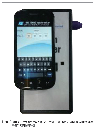 ST마이크로일렉트로닉스는 안드로이드 기반 앱인 ‘NfcV 리더(NfcV-reader)’를 개발했다. 이 앱을 사용하면 NFC 가능 스마트폰과 통신하고 음주 측정기의 Threshold 값을 조정할 수 있다. 이 앱은 구글 플레이 스토어에서 다운로드할 수 있다.