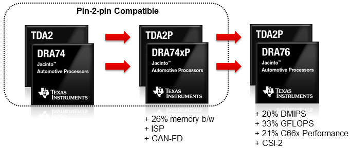 이처럼 빠르게 변화하는 오토모티브 시장의 요구를 충족하기 위해 TDA2P 및 DRA76은 Jacinto 오토모티브용 SoC 플랫폼에 추가되어 확장성을 제공하며, 다음과 같은 특징을 가지고 있다: