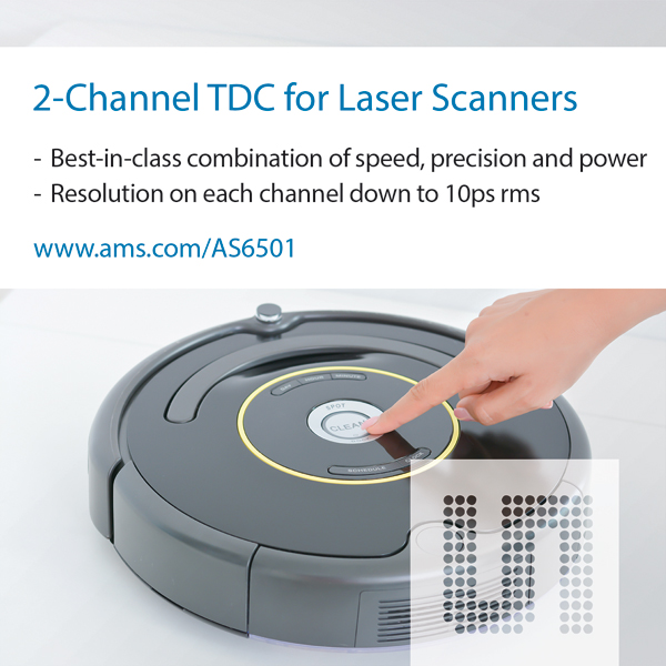 ams는 싱글 빔 광학 거리측정 장비와 의료용 이미징 시스템에서 고속 스캐닝 및 고정밀 특성을 제공하는 2채널 TDC(time-to-digital converter) 신제품 AS6501을 출시한다고 밝혔다.
