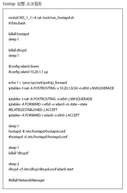 무선 WiFi을 Host AP로 동작하도록 hostap 프로그램을 다음과 같이 확인한다.