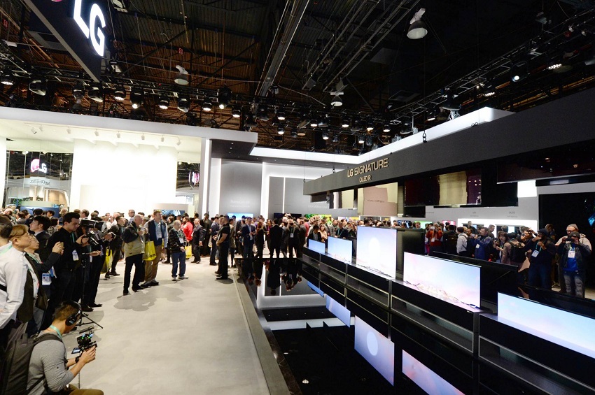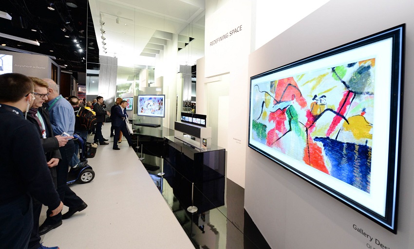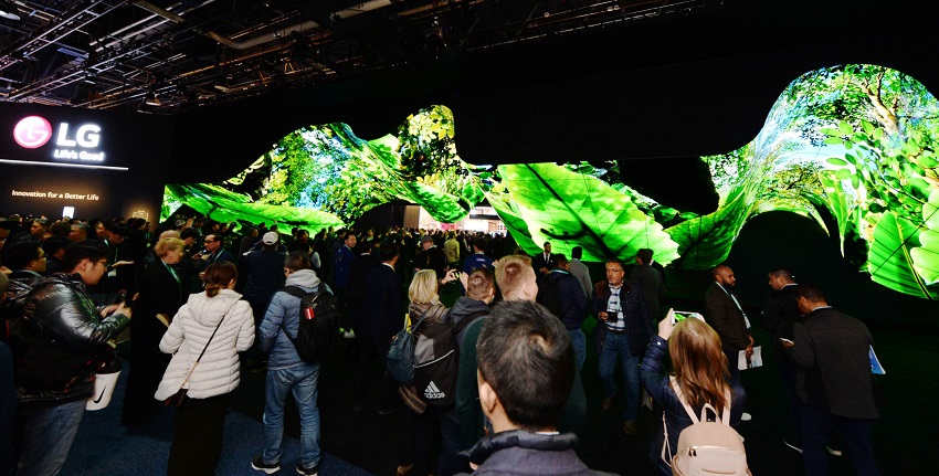 올레드 TV: LG전자가 CES 2020 전시회에서 압도적 화질과 디자인의 올레드 TV 신제품을 선보였다. LG전자 부스를 찾은 관람객들이 LG 올레드 TV를 살펴보고 있다.