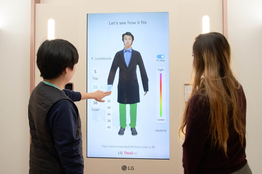 ThinQ Fit: LG전자가 CES 2020 전시회에서 시장을 선도하는 혁신 제품과 서비스를 대거 선보였다. LG전자 부스를 찾은 관람객이 3D카메라를 이용해 아바타를 생성하고 다양한 스타일의 옷을 입혀보는 '씽큐 핏(ThinQ Fit)' 서비스를 체험하고 있다..jpg)