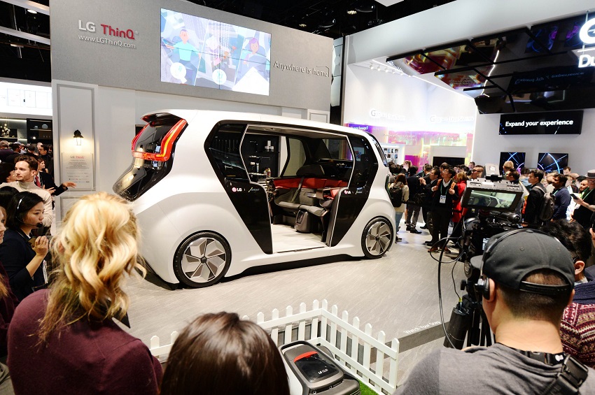LG 씽큐존_커넥티드카: LG전자가 CES 2020 전시회에서 webOS Auto(웹OS 오토)를 적용해 개발한 커넥티드카 솔루션을 선보였다. 집에서 차량으로 이어지는 인공지능 경험에 관람객들이 높은 관심을 보이고 있다.