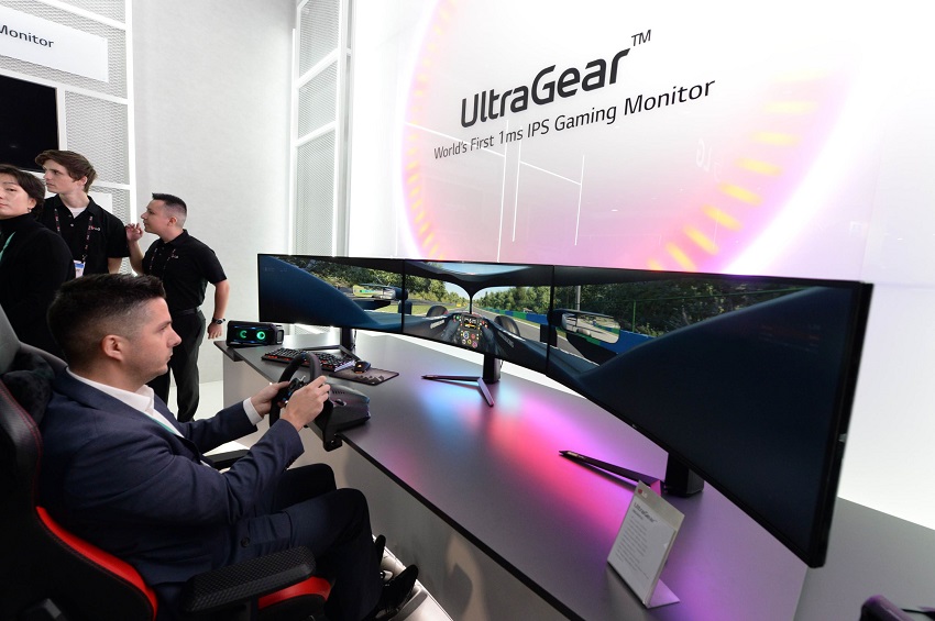 울트라기어 모니터: LG전자가 현지시간 7일부터 미국 라스베이거스에서 열린 CES 2020 전시회에서 고성능 게이밍 모니터 LG 울트라기어 신제품을 선보였다. LG전자 부스를 찾은 한 관람객이 LG 울트라기어로 게임을 즐기고 있다..