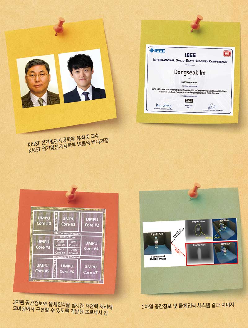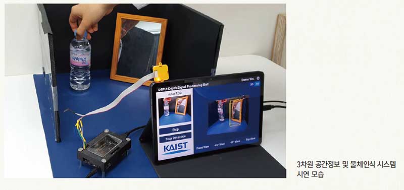 카메라와 저전력 뎁스 센서(64 픽셀)를 사용하여 단일 카메라 깊이 추정 및 센서 퓨전 기술을 통해 강건한 3차원 공간정보를 생성하며, 이 공간정보로 3차원 포인트 클라우드 기반 심층 신경망을 처리하여 모바일에서도 3차원 애플리케이션 구현이 가능한 반도체 칩을 개발했다.