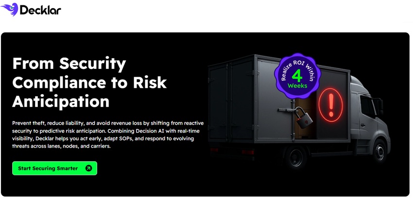 데클라(CEO 산제이 샤르마)는 기존 트랙-앤-트레이스(물품 품목 위치 추적 프로세스) 기능을 넘어, 운송 과정 전반의 패턴을 분석해 공급망에 발생할 수 있는 위험을 사전에 감지하고 차단하는 ‘보안 위험 예측(Security Risk Anticipation)’ 솔루션을 발표했다.
