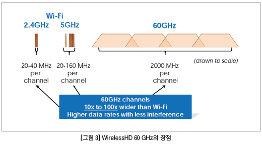실리콘 이미지의 팀 벨링(Tim Vehling) 제품 마케팅 부사장 겸 무선 사업부 총괄 책임자는 “2.4 GHz / 5 GHz 대역을 이용하는 Wi-Fi와 달리 60 GHz 대역을 이용하는 WirelessHD는 간섭이 적고 지연이 5 ms 이하로 적기 때문에 A/V 전송을 위한 우수한 기술이다”며 “특히 지연이 적기 때문에 게임 용도로 적합하다. 예를 들어 태블릿을 컨트롤러로 해서 TV 화면에서 게임을 플레이하는 경우에도 낮은 지연으로 플레이할 수 있고 HD 동영상을 5 m 이상 떨어진 거리에서 조작할 수 있다”고 밝혔다.