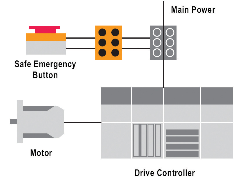예를 들어서 신문을 인쇄하는 설비라고 하자. 이러한 설비가 효율적이기 위해서는 신문을 매우 빠른 속도로 처리해야 한다. 설비의 높은 속도가 위험성이므로 작업자가 작업을 할 때는 이러한 설비의 움직이는 장치들로부터 작업자를 보호하는 것이 중요하다. 만약 어떤 작업자가 인쇄 설비의 위험 구역 안으로 들어가거나 여기에 노출되었을 때는 안전 센서가 위험 조건을 감지하고 설비를 안전 상태로 전환한다. 모든 것이 하나의 대형 모터로 작동되는 소형 설비의 경우라면 메인 드라이브에 대한 전력 차단(safe stop)과 수동 제동장치가 설비를 되도록 신속하게 정지시킬 수 있을 것이다.