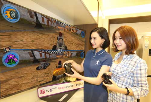 ‘비치버기레이싱’, ‘골프스타’ 등 스마트폰에서 즐기던 인기 게임 앱을 TV에서도 동일한 계정으로 이용 가능하고, 별도 게임기 없이도 세계적인 인기 스포츠 게임 ‘위닝일레븐 2015’ 등의 클라우드 게임까지 즐길 수 있다.