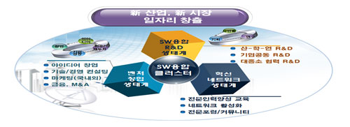 SW융합클러스터는 중앙정부와 지자체 간의 상호협업과 협력을 통해 지역의 신(新)시장, 신(新)산업, 새로운 일자리를 창출하는 핵심개혁과제와 경제혁신 3개년 계획의 핵심 사업이다.
