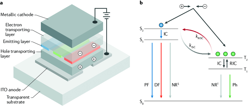 유기 발광 다이오드(OLED)는 다양한 디스플레이 분야에서 핵심 기술로 자리 잡고 있으며, 금속 인광체를 대체할 차세대 발광 기술로 특히 열활성화 지연 형광(Thermally Activated Delayed Fluorescence, TADF) OLED가 주목받고 있다. 그러나 높은 효율에도 불구하고 수명 문제는 상용화를 위한 주요 과제로 남아 있다. 이 글에서는 TADF의 발광 매커니즘과 열화 원인을 살펴보고, 소재 및 소자 구조 관점에서 수명 개선 방법을 정리하고자 한다.