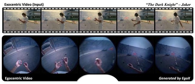 KAIST(총장 이광형)는 김재철AI대학원 주재걸 석좌교수 연구팀이 관찰자 시점의 영상만을 활용해 영상 속 인물이 실제로 보고 있었을 장면을 정밀하게 생성하는 인공지능 모델 ‘에고엑스(EgoX)’를 개발했다고 2월 23일 밝혔다.