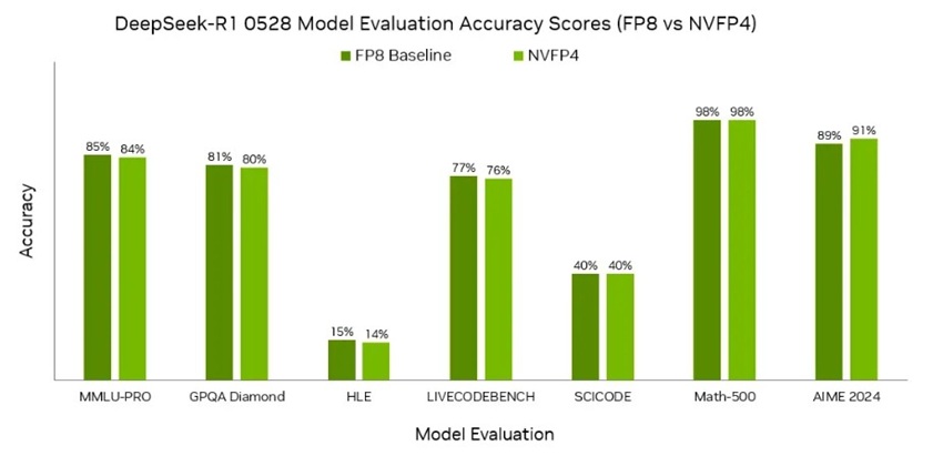 정확도 측면에서도 NVFP4는 업계 기준을 충족했다. 엔비디아는 MLPerf 훈련과 추론 부문에서 NVFP4 기반 모델로 모든 비공개 테스트 항목을 통과했다고 밝혔다. 딥시크-R1, 라마 3.1 8B·405B, 라마 2 70B 등 주요 LLM 모델에서도 벤치마크 요구 정확도를 유지했다.