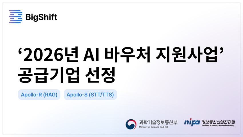 빅시프트(대표 박재균)는 과학기술정보통신부와 정보통신산업진흥원(NIPA)이 주관하는 ‘2026년 AI 바우처 지원사업’의 공급기업으로 선정됐다고 밝혔다.