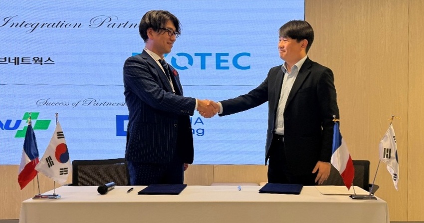 이날 협약식이 열린 행사에는 로맹 물랭(Romain Moulin) 엑소텍 최고경영자(CEO)와 류 타테와키(Ryu Tatewaki) 엑소텍 아시아·태평양(APAC) 총괄을 비롯해 조연민 CJ올리브네트웍스 컨설팅 담당, 클라라 샤파즈(Clara Chappaz) 프랑스 AI·디지털 특임 장관, 노용석 중소벤처기업부 제1차관 등 한불 양국 주요 관계자들이 참석했다.